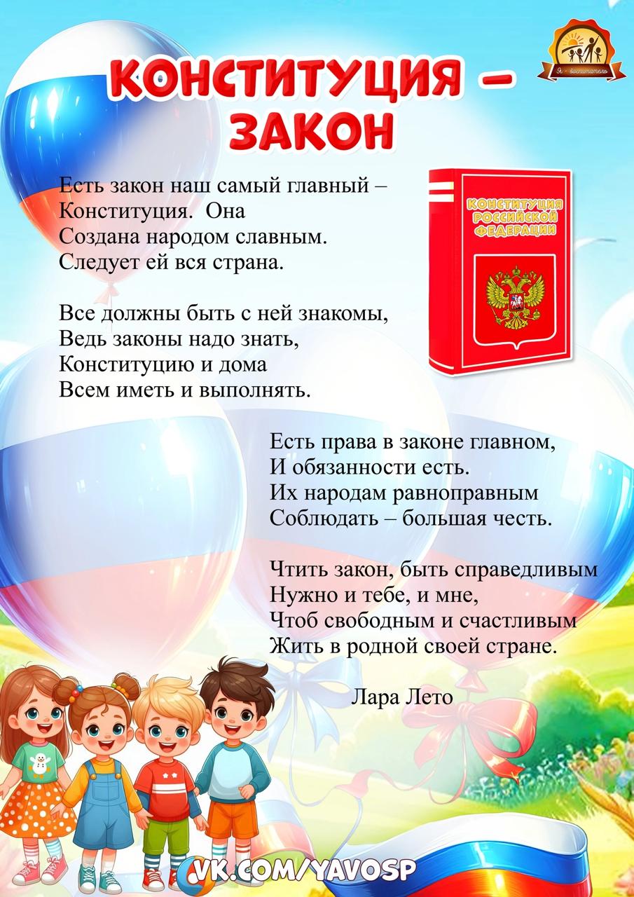 «День Конститу́ции Российской Федерации» — государственный праздник, празднование принятия Конституции в современной России — Российской Федерации, отмечается 12 декабря.