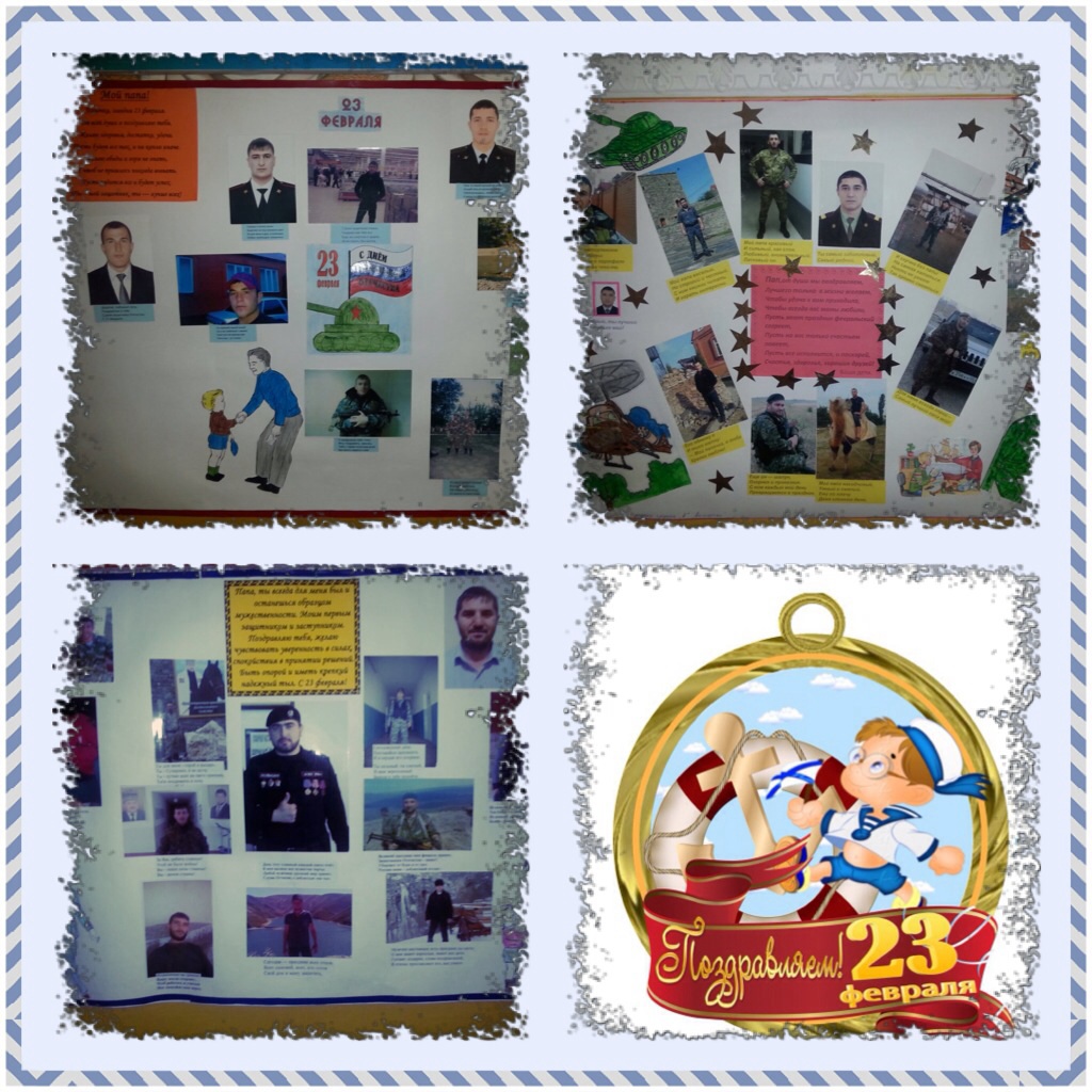 16.02.2016В преддверии праздника 23 февраля,в каждой из групп нашего детского сада была организованна фотовыставка ,посвященная Дню защитника отечества.Педагоги,дети и их родители подошли к организации выставки очень творчески,фотовыставки были представлены в виде фотоколлажей.