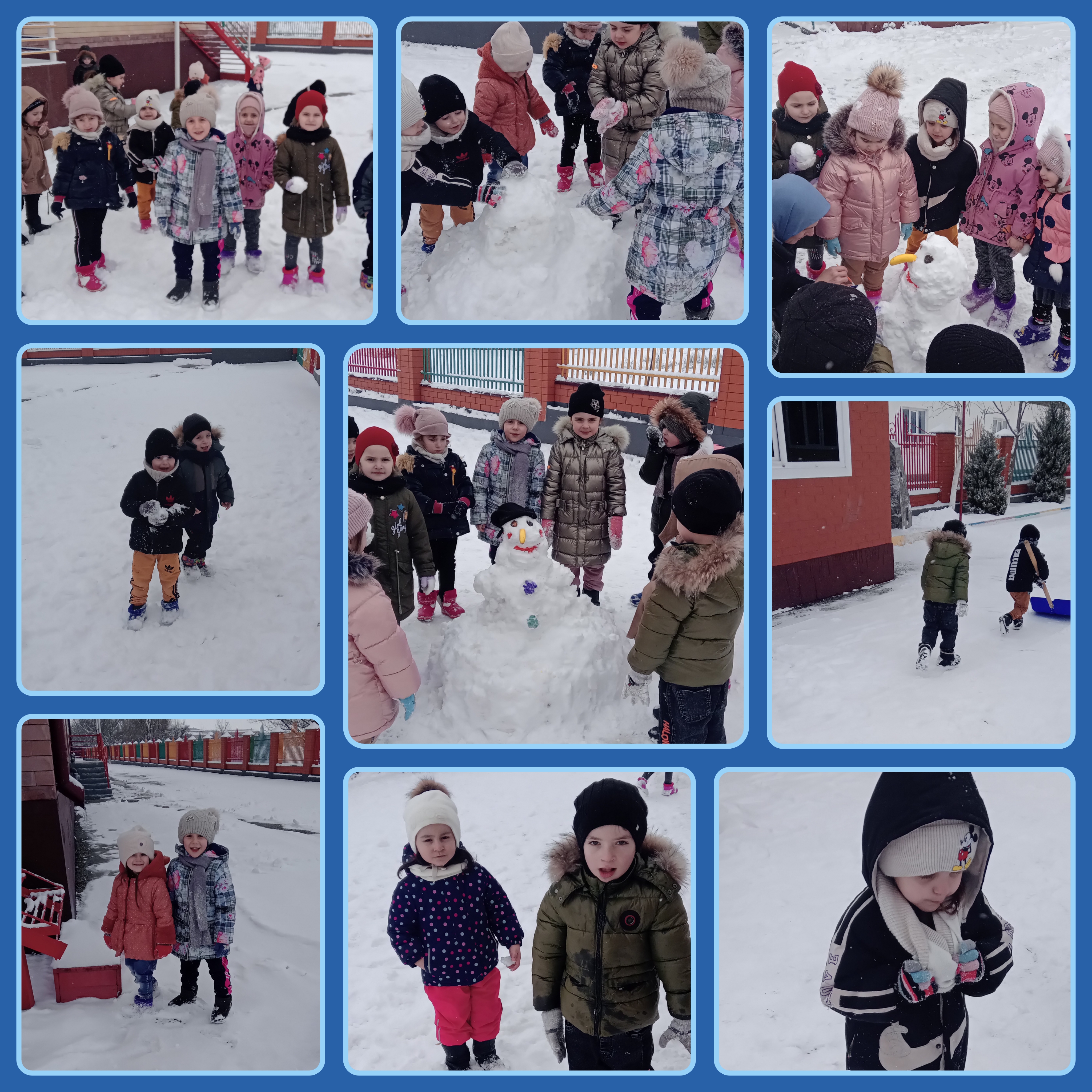 Улицы засыпало снегом, и малыши в детском саду с удовольствием выходят на зимнюю прогулку. Ведь так хочется потрогать руками снег, поймать в ладошки снежинку, и конечно поиграть в игры со снегом. Вот мы и решили слепить веселого снеговика.