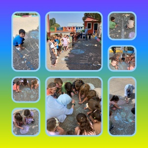 рисунки на асфальте о мирной жизни,дружбе,создание "символов Мира".